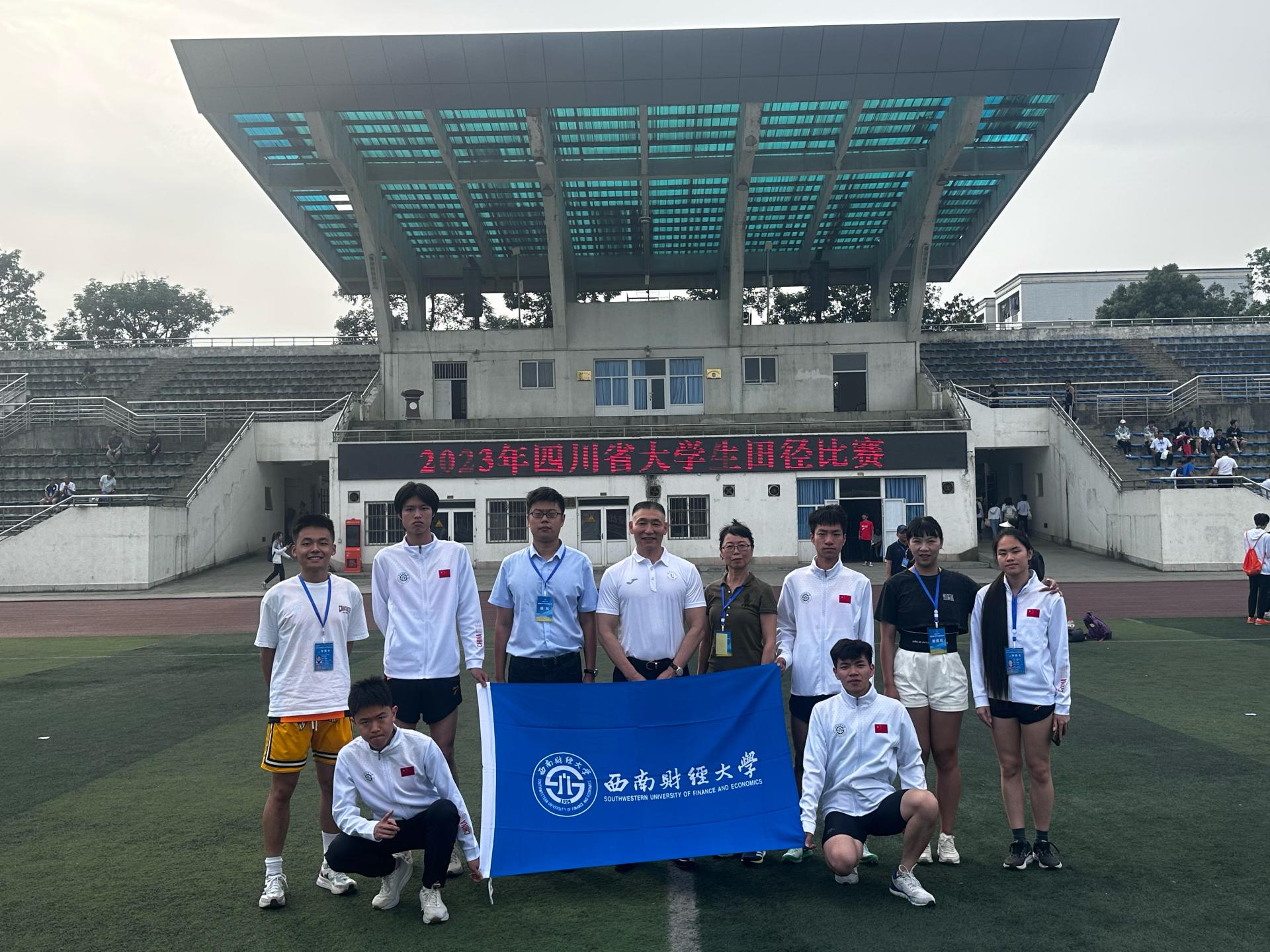 在2023年四川省大学生田径比赛中,由杜文、纪小月老师带领的校田径队获得多项比赛前八名。其中女子200米决赛姚奕如勇夺第六名,男子110米栏决赛中何韬夺得第六,苏昊夺得第七,男子跳高决赛中王瀚文夺得第六名,男子4*100勇夺小组第一。
