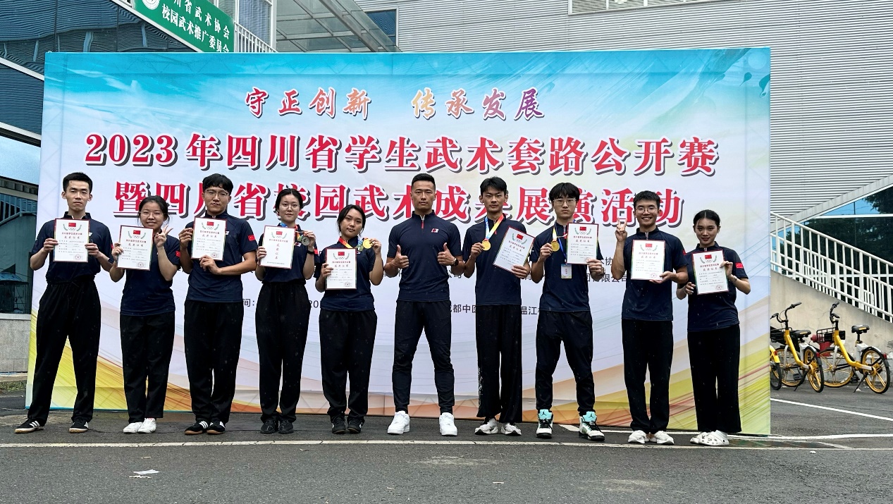 在2023年四川省大学生健美操、啦啦操、艺术集体操、体育舞蹈比赛中,由刁永辉、张锐老师带领校健美操队获得专业组(高水平组)竞技健美操三人操亚军;由吴婧、伍钰老师带领校艺术体操队获得校园组艺术集体操自选动作第一名,校园组艺术集体操规定组合第一名;由董凡迪、刘海尔带领校体育舞蹈队获得标准舞(团体舞组)六人(银牌)第一名、拉丁舞(团体舞组)六人(金牌)第五名。