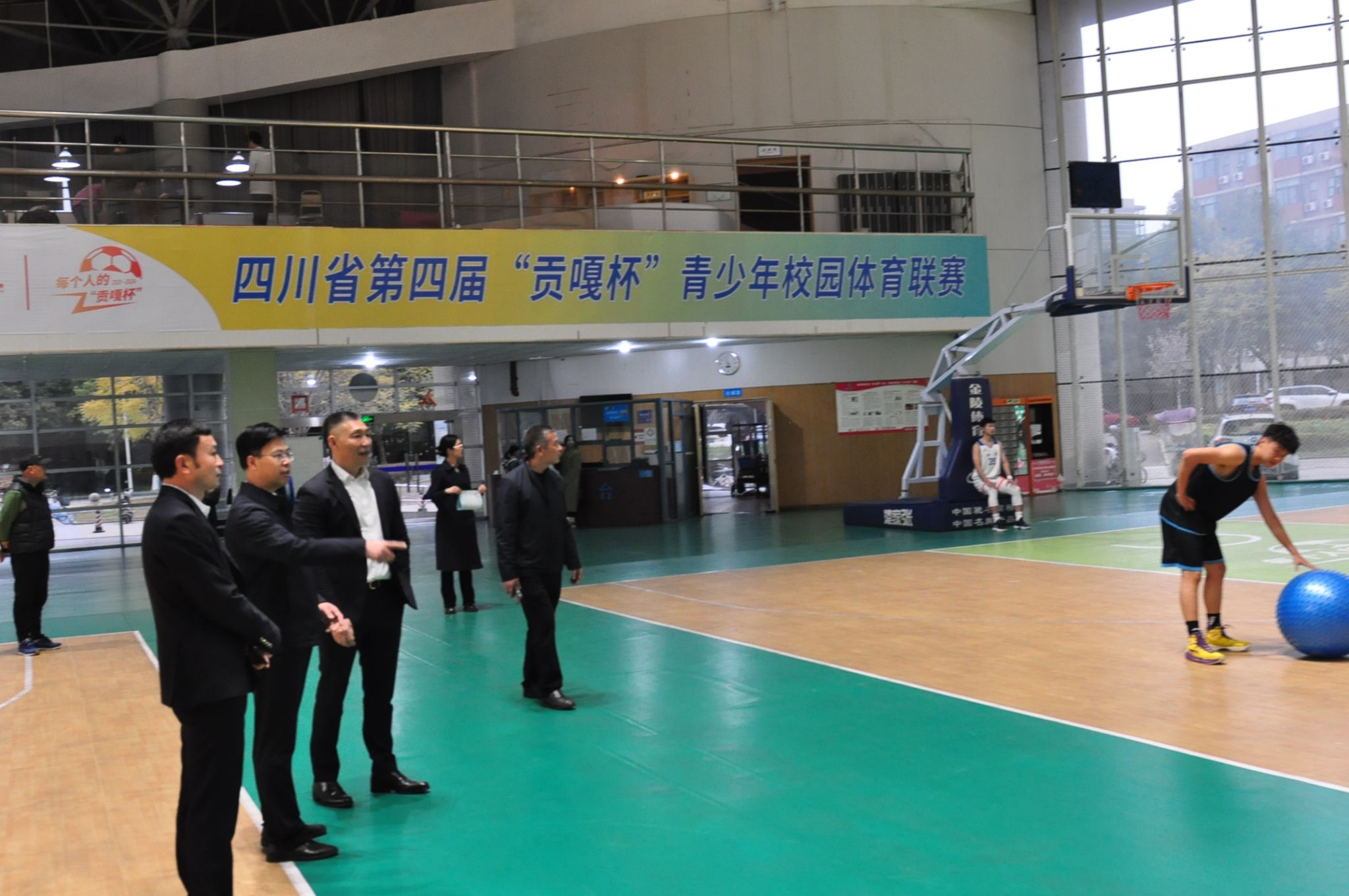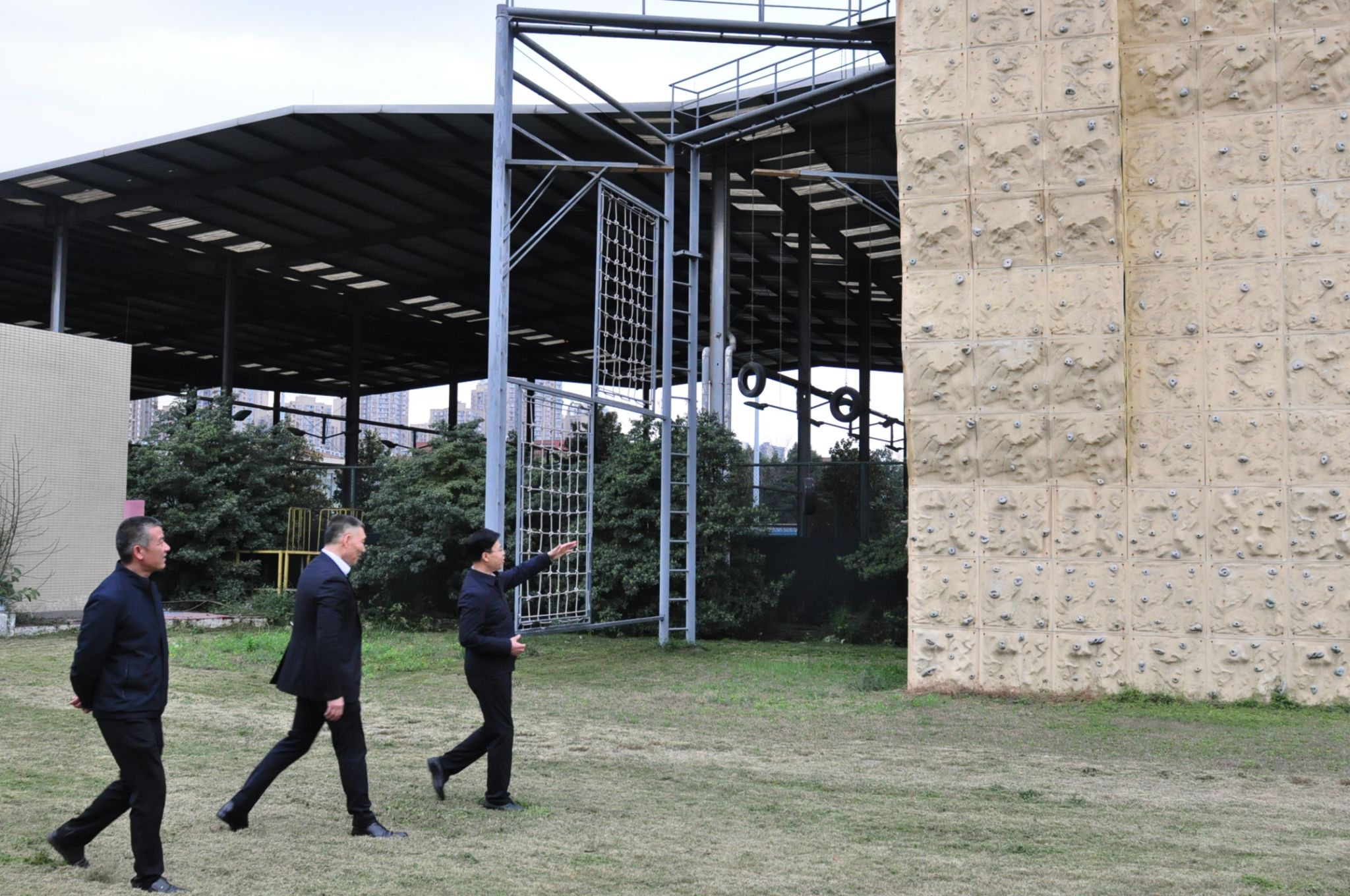 座谈会后,胡金朝一行参观了学校的耕读田园劳动教育场地、素质拓展中心及体育馆等教学场地。