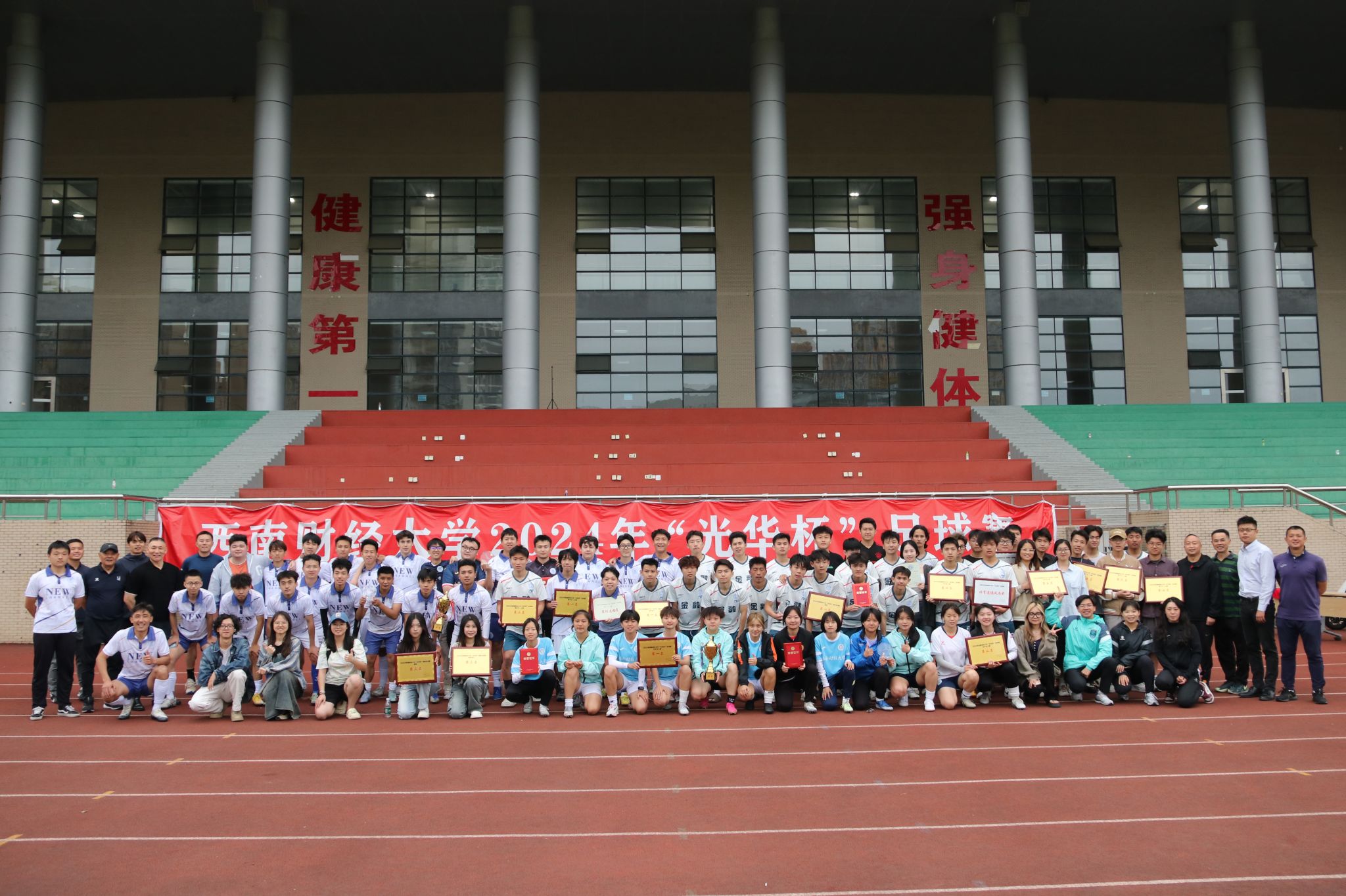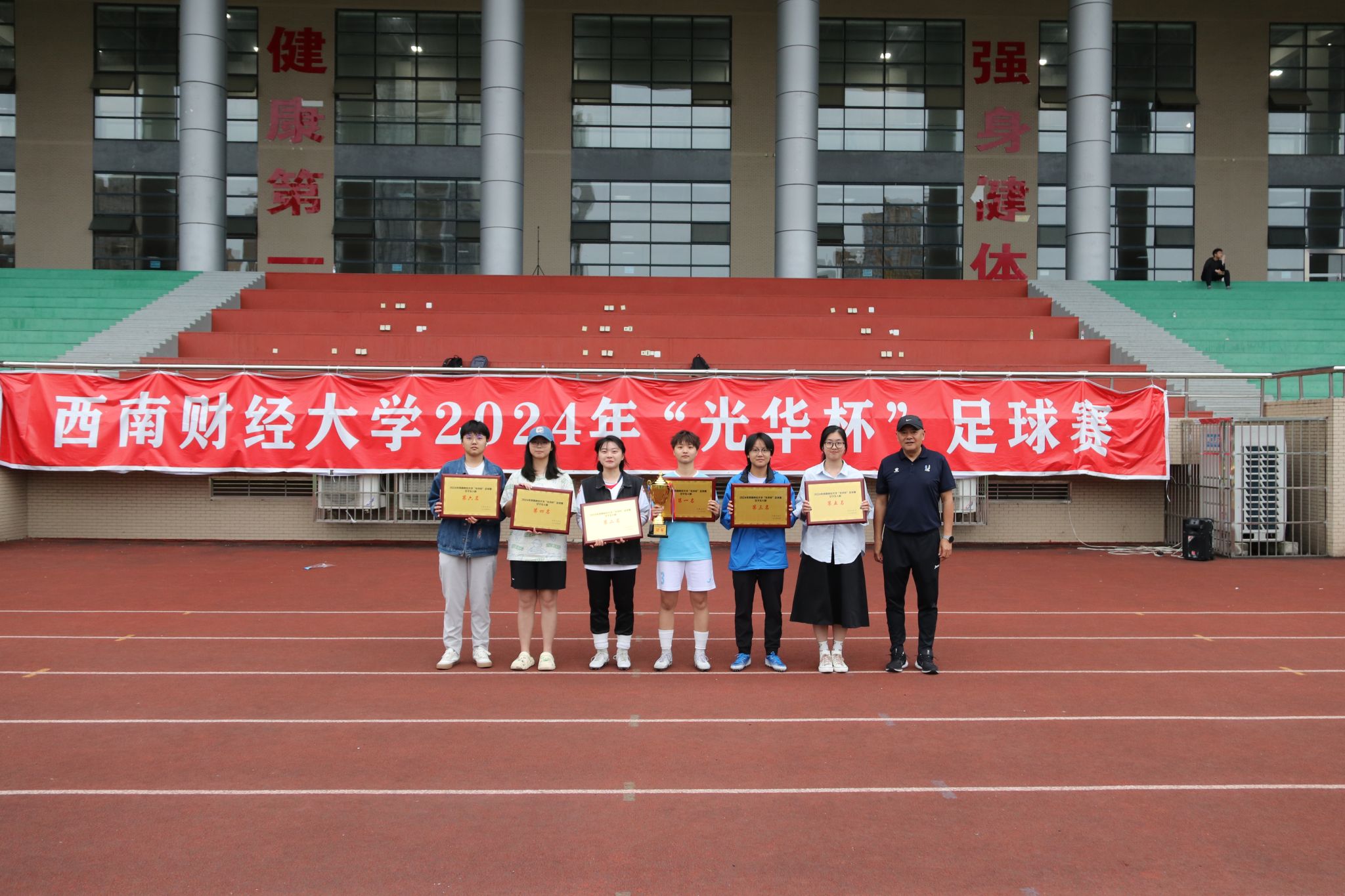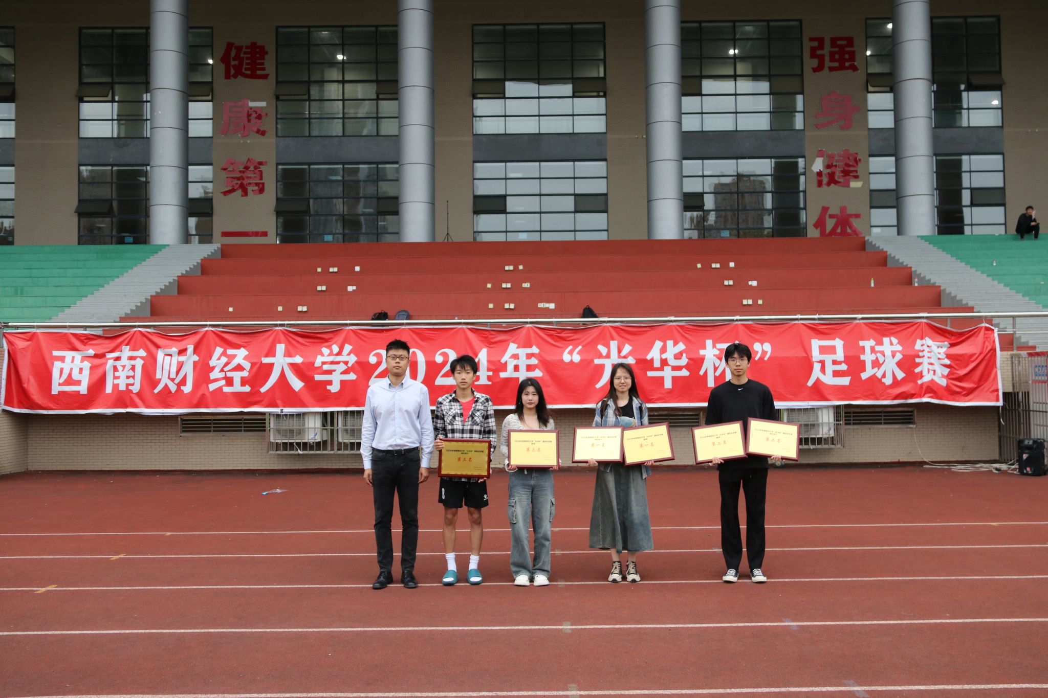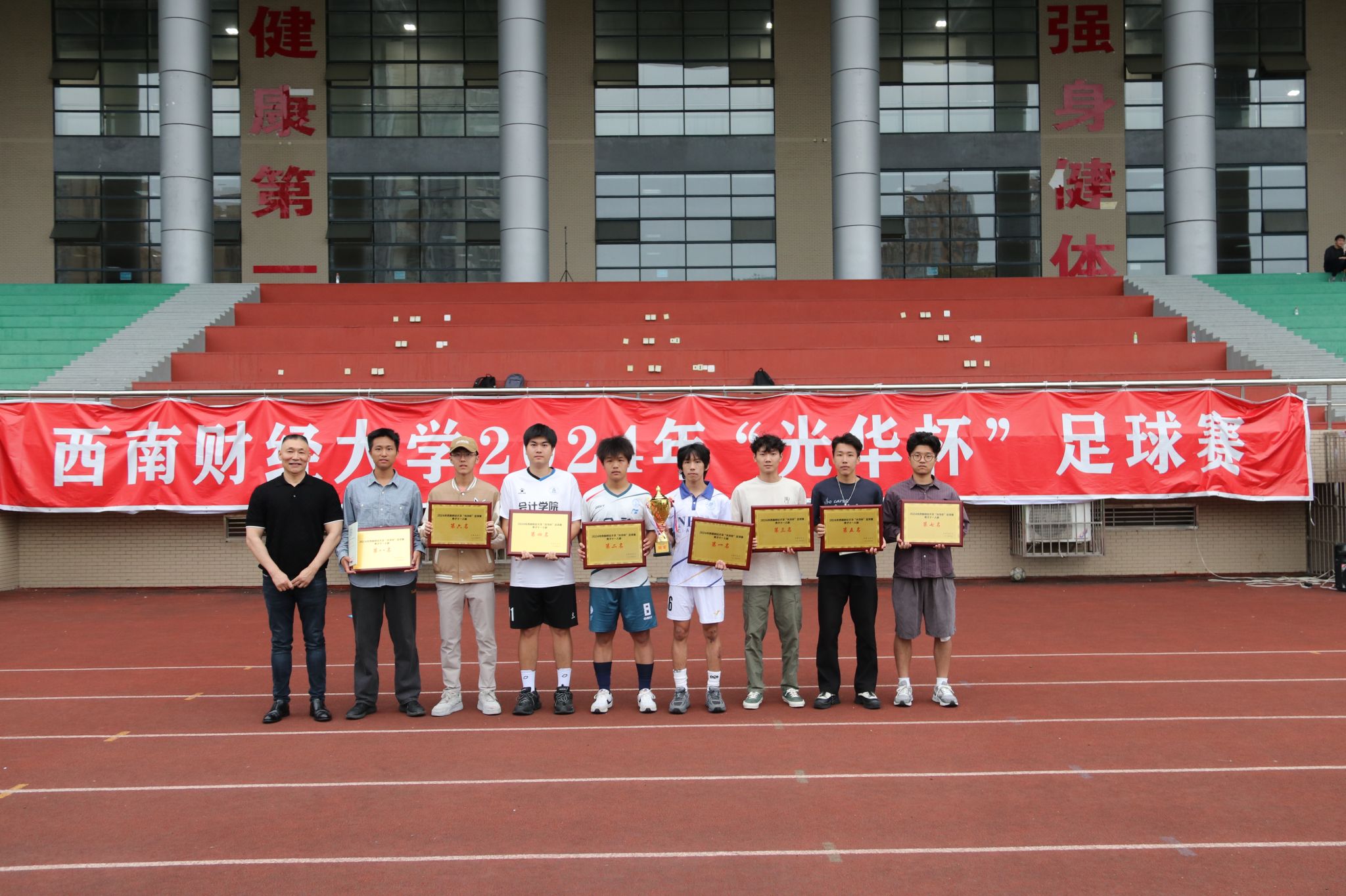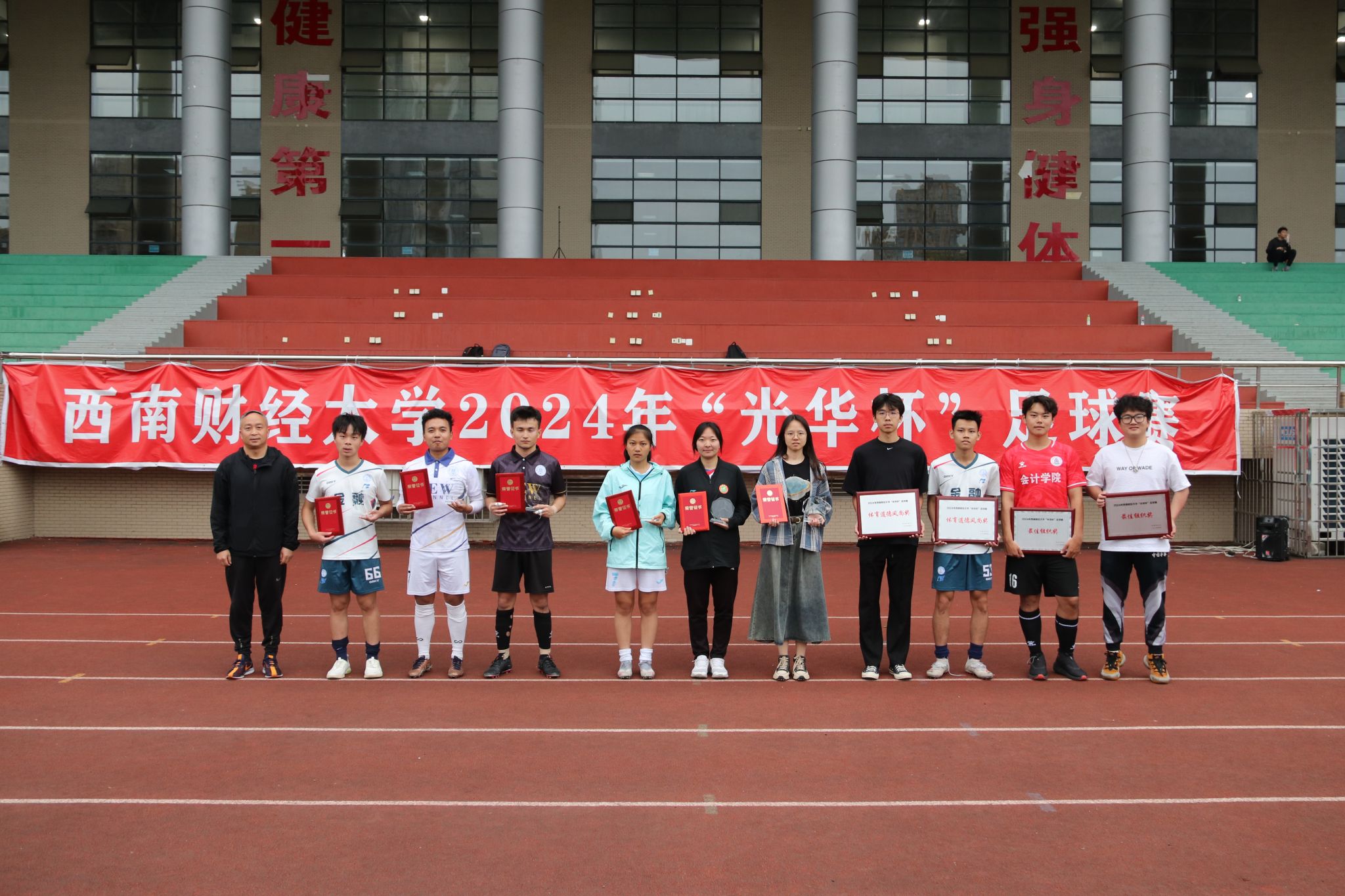 4月23日下午,“礼赞新时代·奋进新征程,迎百年校庆·铸西财辉煌”2024年西南财经大学“光华杯”足球比赛颁奖仪式在晨曦足球场举行。多宝在线登录院长杨远波,党委书记周正宏,副院长阴涛、陈丛刊,副书记李治为获奖学院以及个人颁发了荣誉证书及奖牌。