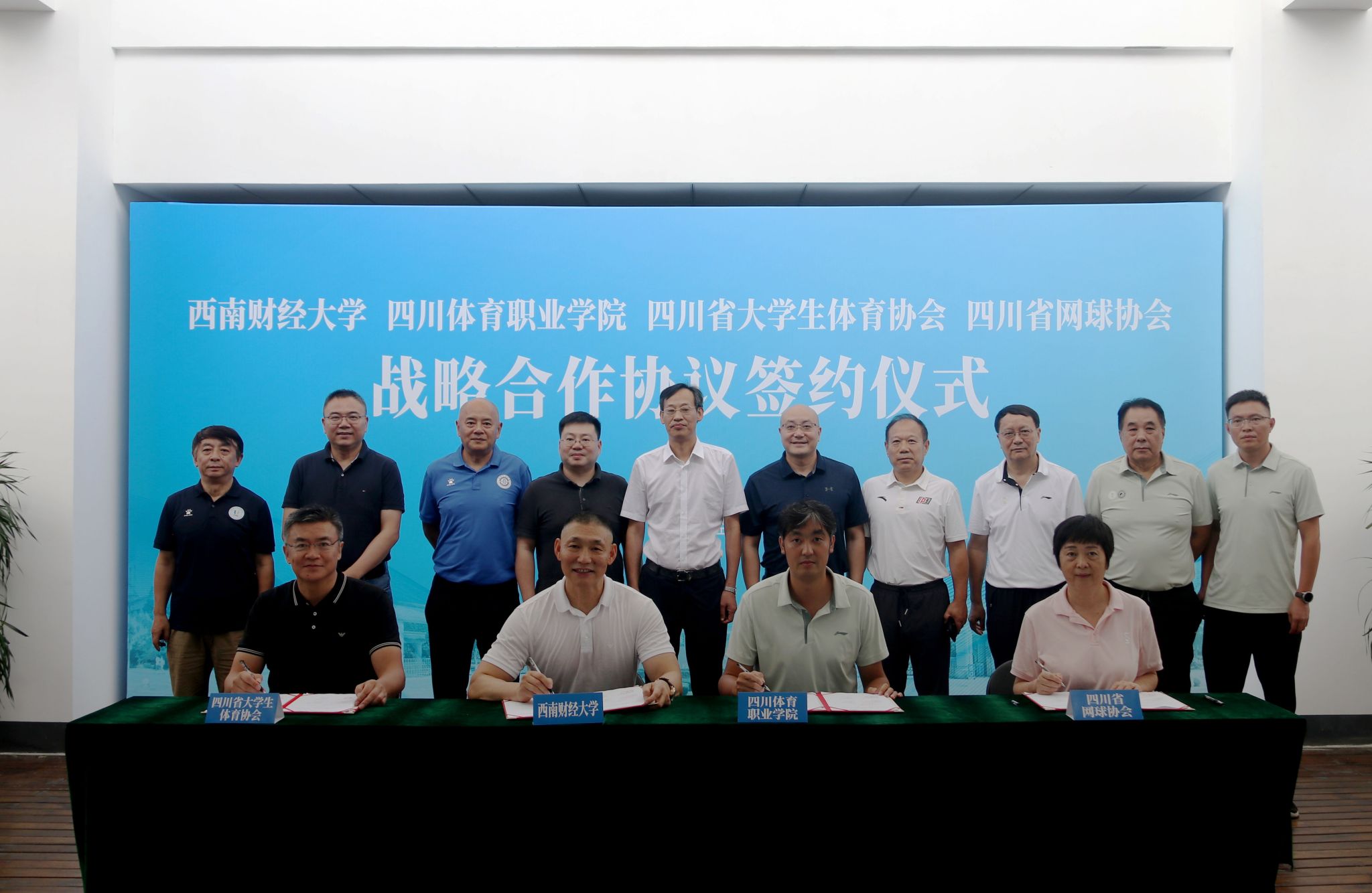 7月19日,学校与四川体育职业学院、四川省网球协会、四川省大学生体育协会四方战略合作协议签约仪式在光华校区体育馆举行。四川体育职业学院党委副书记刘汉权,四川省大学生体育协会秘书长刘江,四川省网球协会会长罗茂乡以及四川省网球运动管理中心、四川省大学生体育协会和四川省网球协会相关负责人;学校党委常委、副校长桂富强,国内合作与发展处、多宝在线登录相关负责人及教师代表参加仪式。