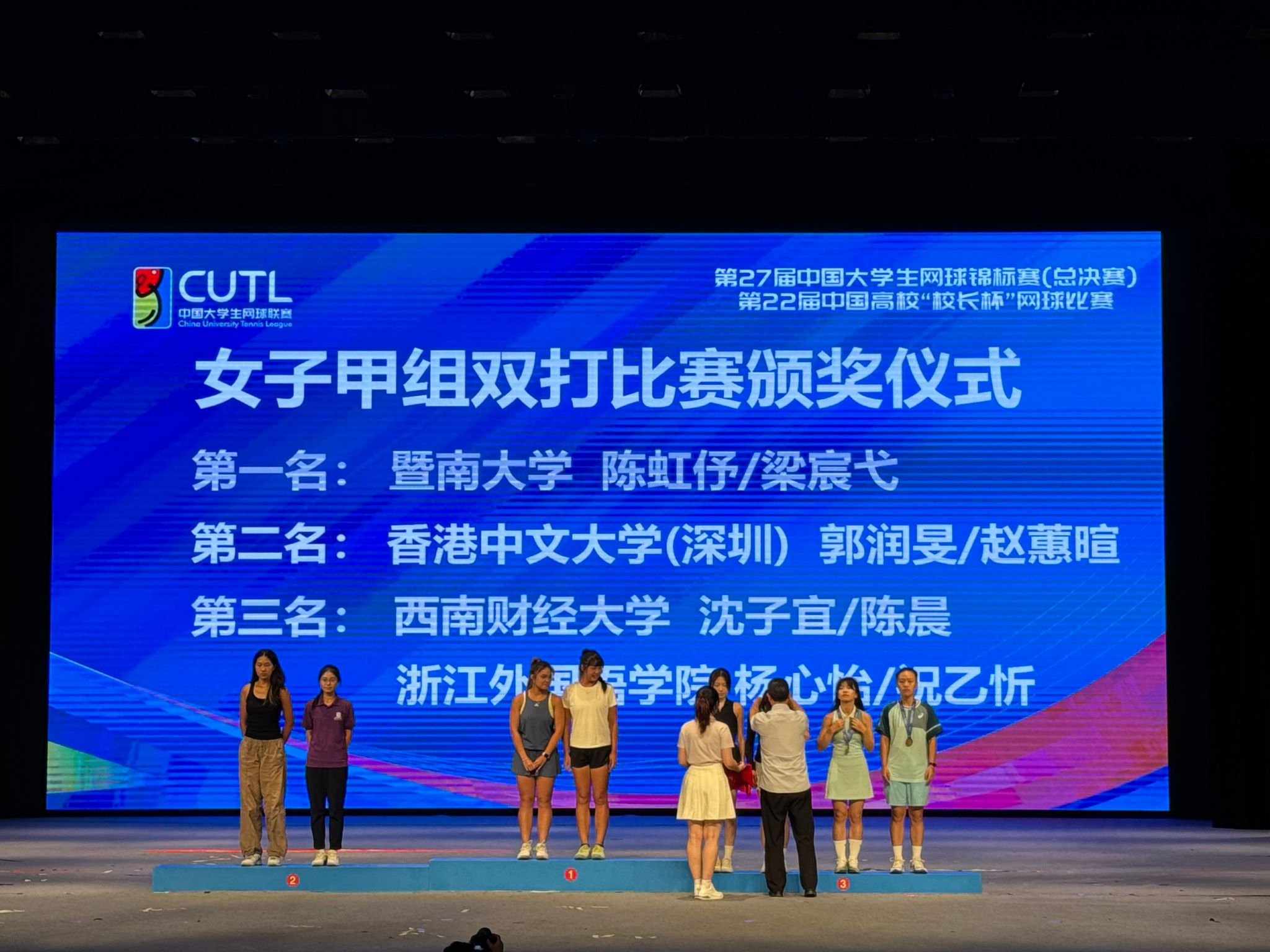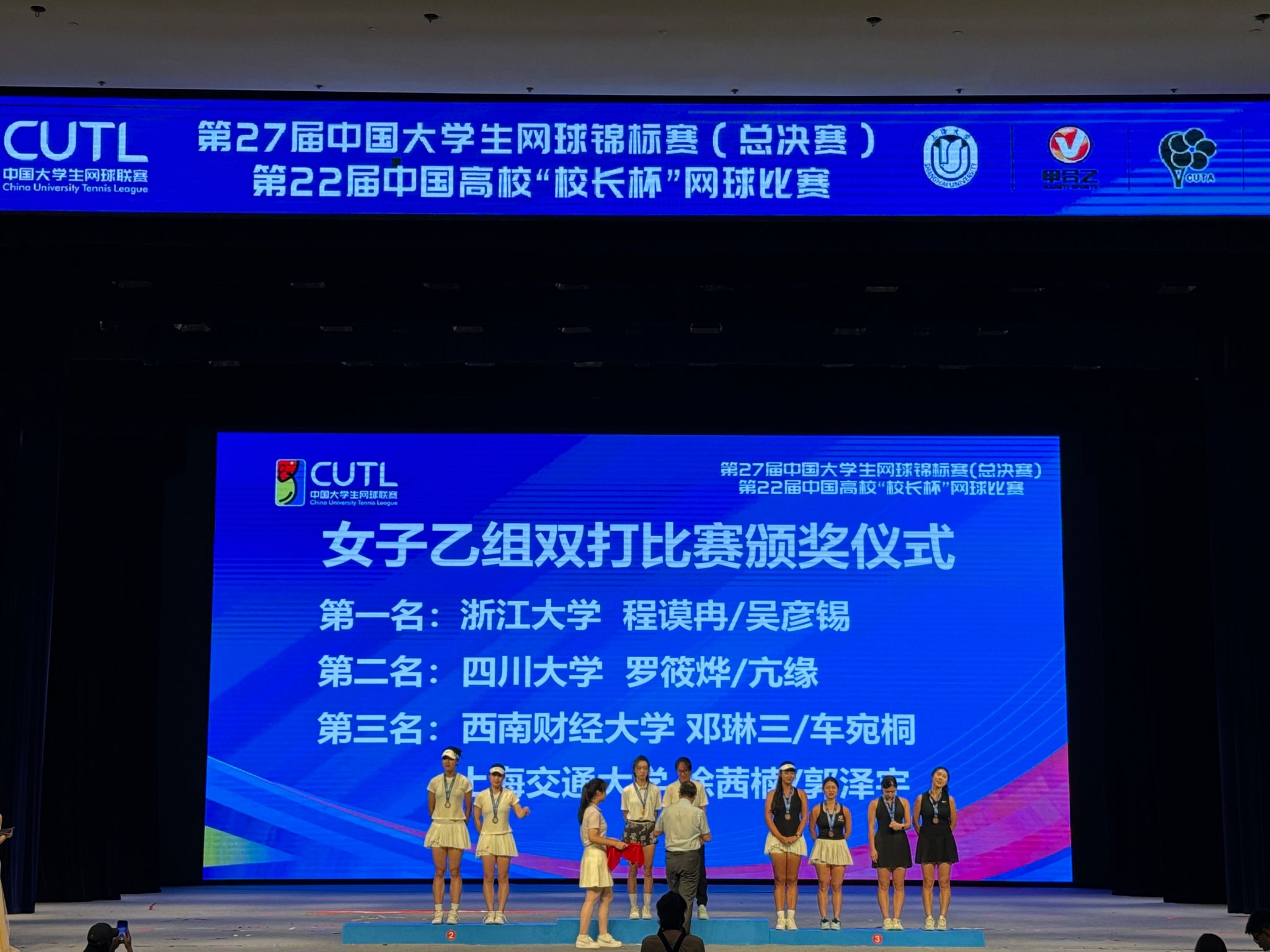 7月22日-8月1日,第27届中国大学生网球锦标赛(总决赛)在上海大学(宝山校区)举行。中国大学生网球锦标赛是我国大学生层面最顶级的网球赛事,经过八大分区赛的激烈角逐,在本届中国大学生网球锦标赛(总决赛)中,共有来自全国132所高校的915名同学成功晋级总决赛。参赛规模创历史新高!多宝(中国)官方网球队在前期分区赛上表现突出,成功晋级总决赛,11名运动员代表学校参赛,孙巨杉、施泓宇、孔星宇担任教练。经过八天的激烈角逐,西财健儿们在强手如林的赛场上顽强拼搏,团结奋进,获得女子普通高校甲组双打季军和女子高水平乙组双打季军的好成绩,充分展现了西财学子的精神风貌和青春风采,为即将到来的西财百年华诞献礼!